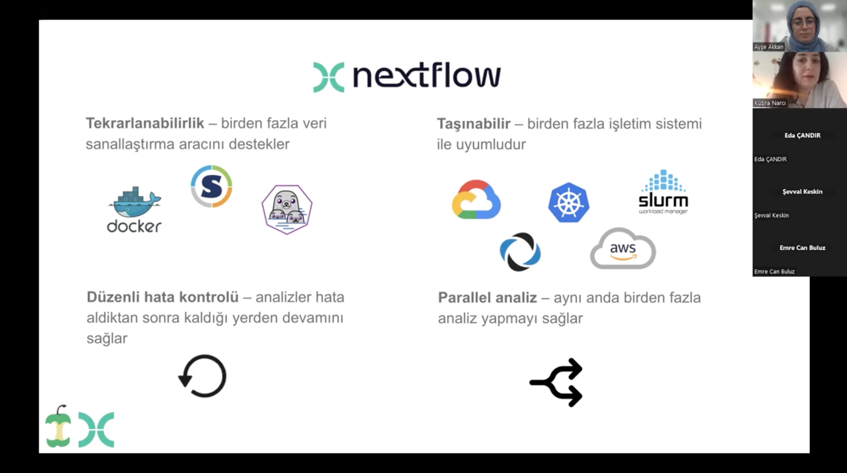 Following our introduction, RSG-Türkiye and I hosted a workshop focusing on workflow reproducibility, Nextflow, and nf-core. We chose Turkish as the language to make it more accessible for participants who are not fluent in English. The online session lasted a bit more than an hour and attracted nearly 50 attendees, mostly university students but also individuals from the research and industry sectors. The strong student turnout was especially gratifying as it aligned with my goal of building a vibrant Nextflow community in Türkiye. I took the opportunity to discuss Nextflow’s ambassadorship and mentorship programs, which can greatly benefit students, given Türkiye’s growing interest in bioinformatics. The whole workshop was recorded and can be viewed on YouTube.