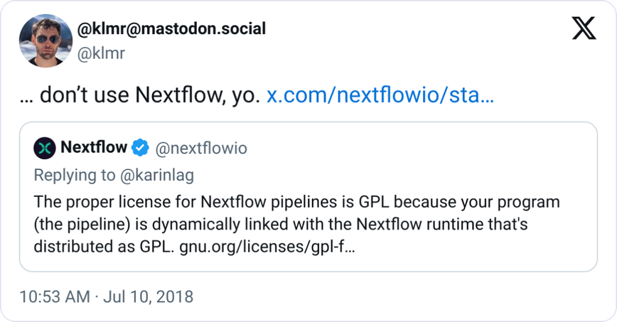 Over past week there was some discussion on social media regarding the Nextflow license and its impact on users' workflow applications.