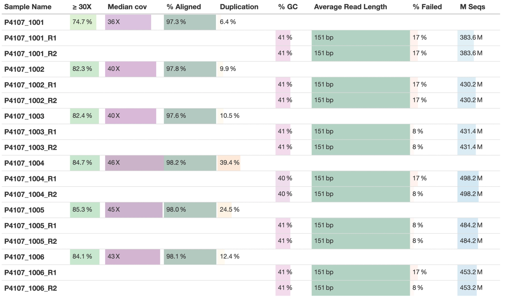 Many of you who are used to reading MultiQC reports will be familiar with seeing General Statistics tables that have “gaps” in rows like this: