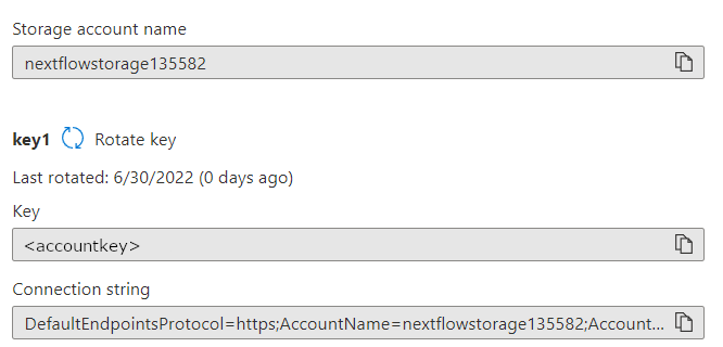 Copy and paste the Key and Connect string as shown and store them in a safe place. These are your storage credentials. You will need them when you set up the Nextflow config file.